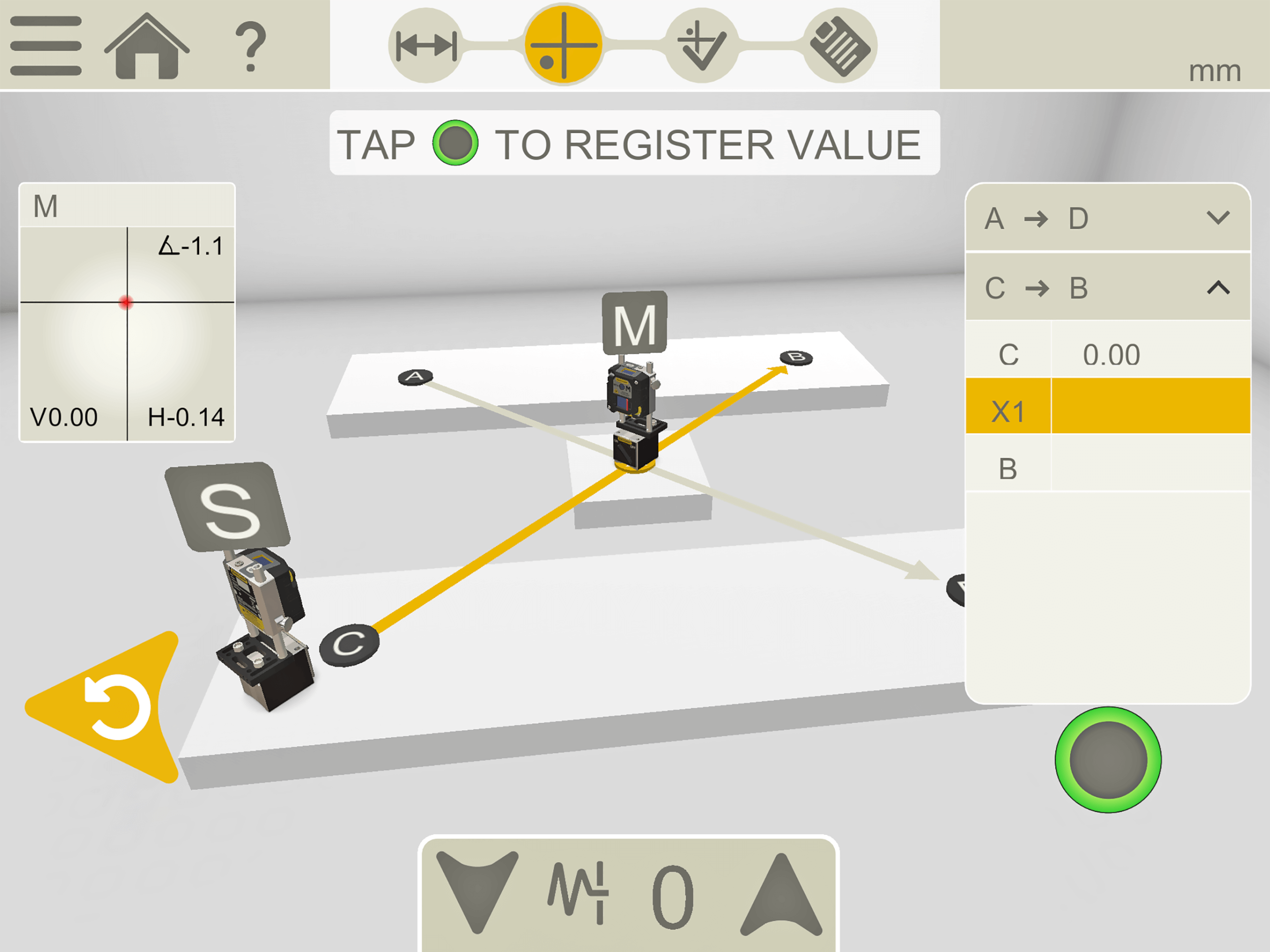 Verwenden Sie die robuste Easy-Laser XT-Anzeigeeinheit oder installieren Sie die kostenlose Ausrichtungsapp auf Ihrem iOS- oder Android-Gerät*. Die intuitive Benutzerschnittstelle führt Sie durch den Messvorgang.