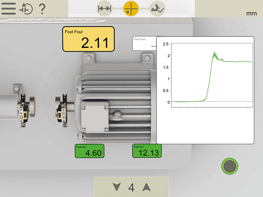 Die XT660-Messeinheiten arbeiten mit der Laserpunkt-Technologie. Dies ermöglicht die Messung größerer Maschinen und längerer Bereiche als die Linienlaser-Technologie. Damit können Sie noch mehr Parameter bei der Installation einer Maschine prüfen, z.B. Verbiegung des Fundaments oder Lagerspiel.